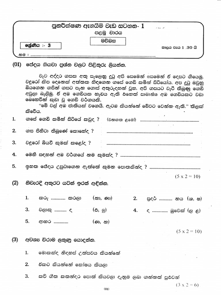 0 ratings0% found this document useful (0 votes) 272 views3 pagesGrade 3 - Sinhala 1