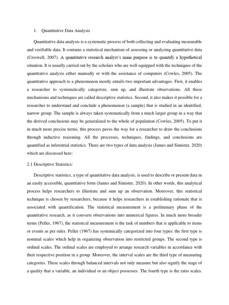 quantitative analysis either manually or with the assistance of computers (Cowles, 2005). The