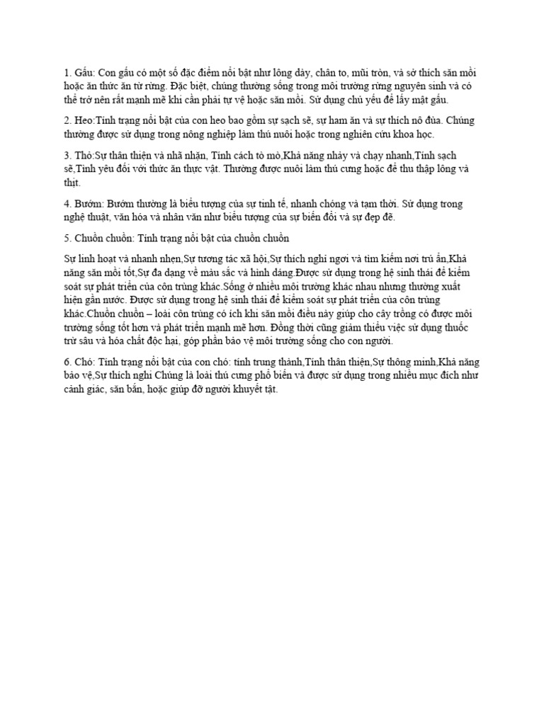 Gấu: Con gấu có một số đặc điểm nổi bật như lông dày, chân to, mũi tròn, và sở thích săn mồi