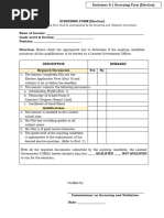 Screening and Validation Commissioner 1G COMEA Chief Commissioner
