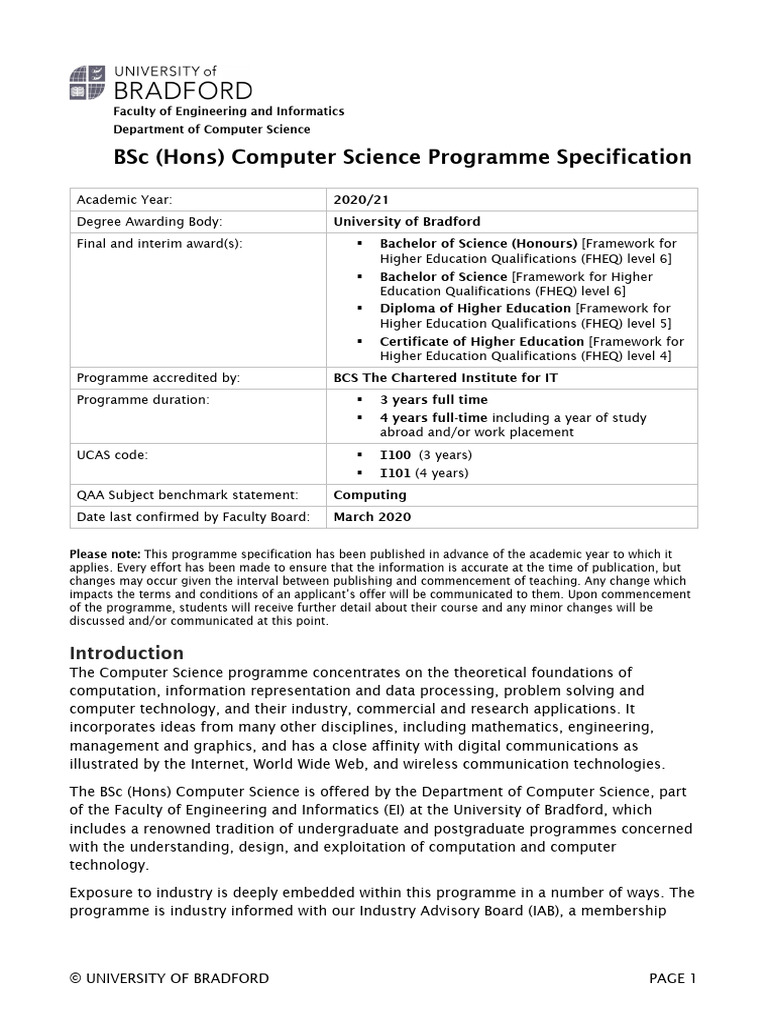 with the BSc Computer Science, means that successful honours graduates are exempted
