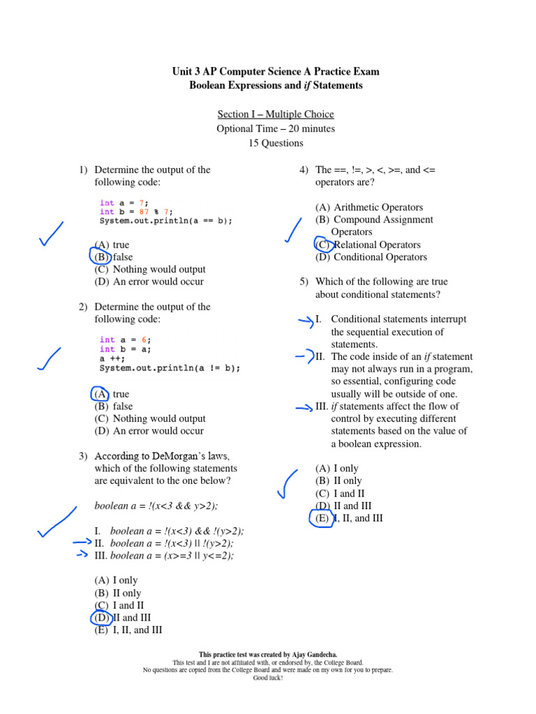 No questions are copied from the College Board and were made on my own for you to prepare.