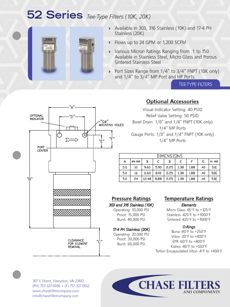 Filter Series Tee-Type Filters up to 20,000 PSI 51 51