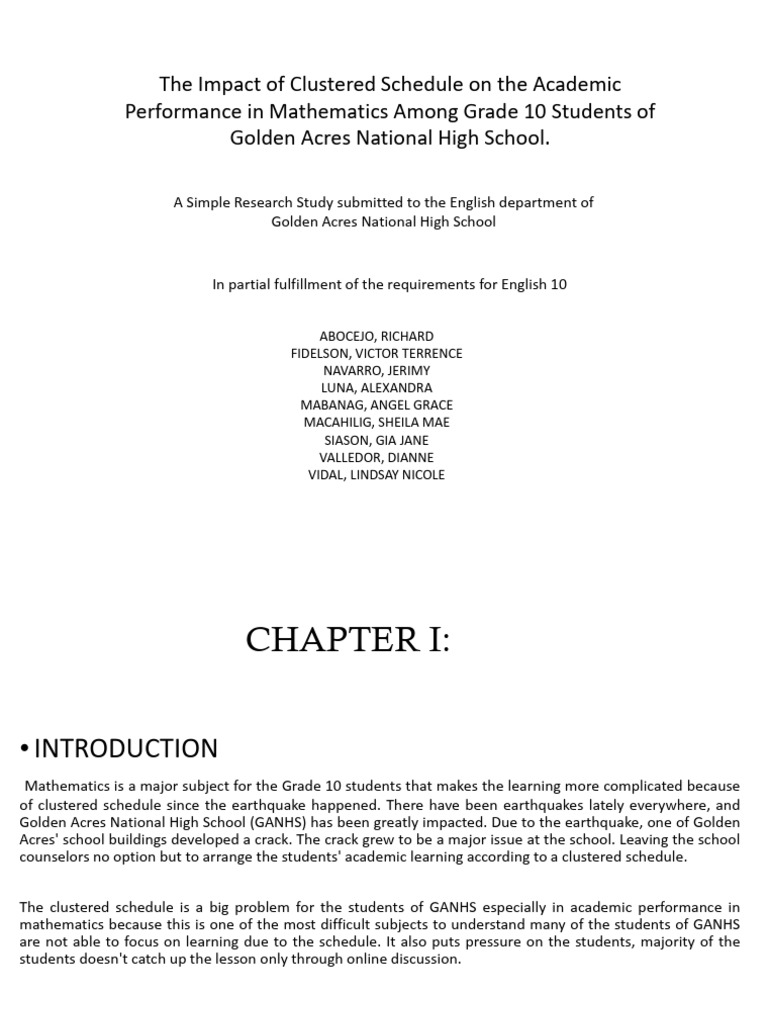 TITLE: The Impact of Clustered Schedule on the Academic Performance in Mathematics Among Grade 10