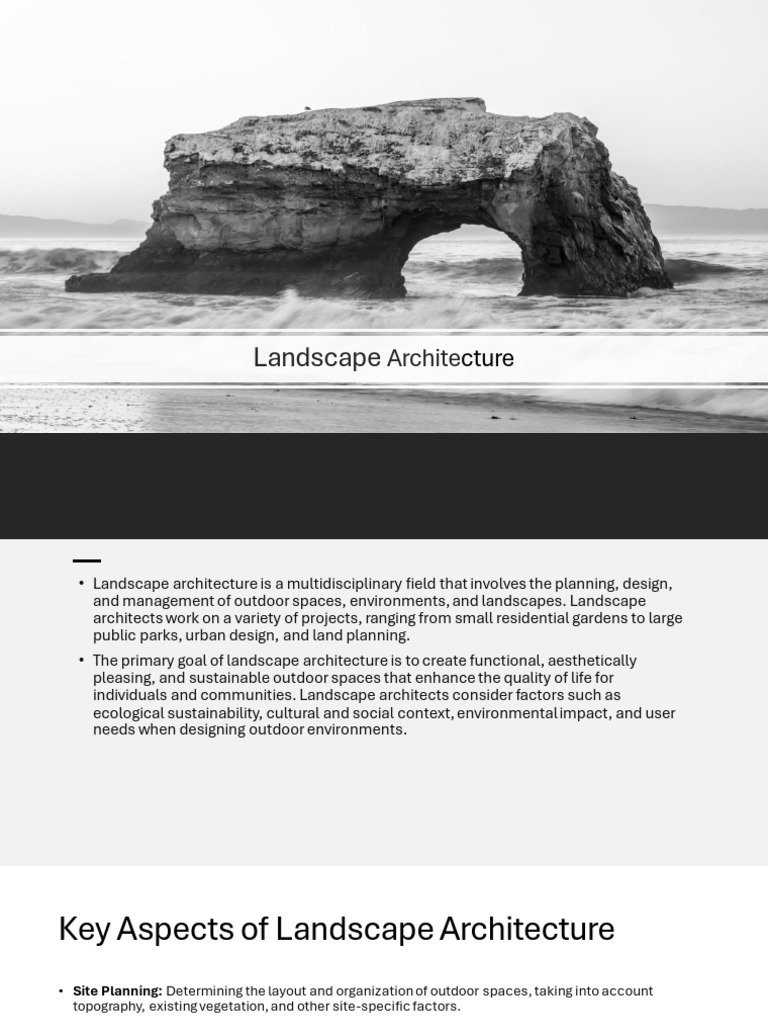 • Landscape architecture is a multidisciplinary field that involves the planning, design,