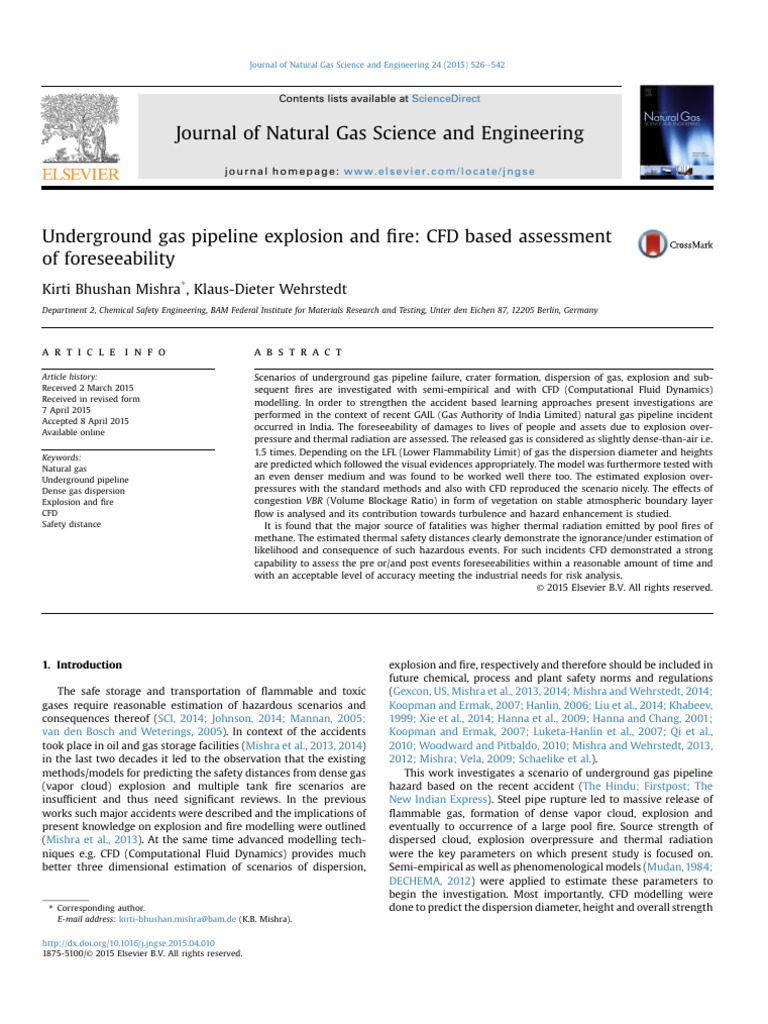Article history: Scenarios of underground gas pipeline failure, crater formation, dispersion of gas, explosion and sub-