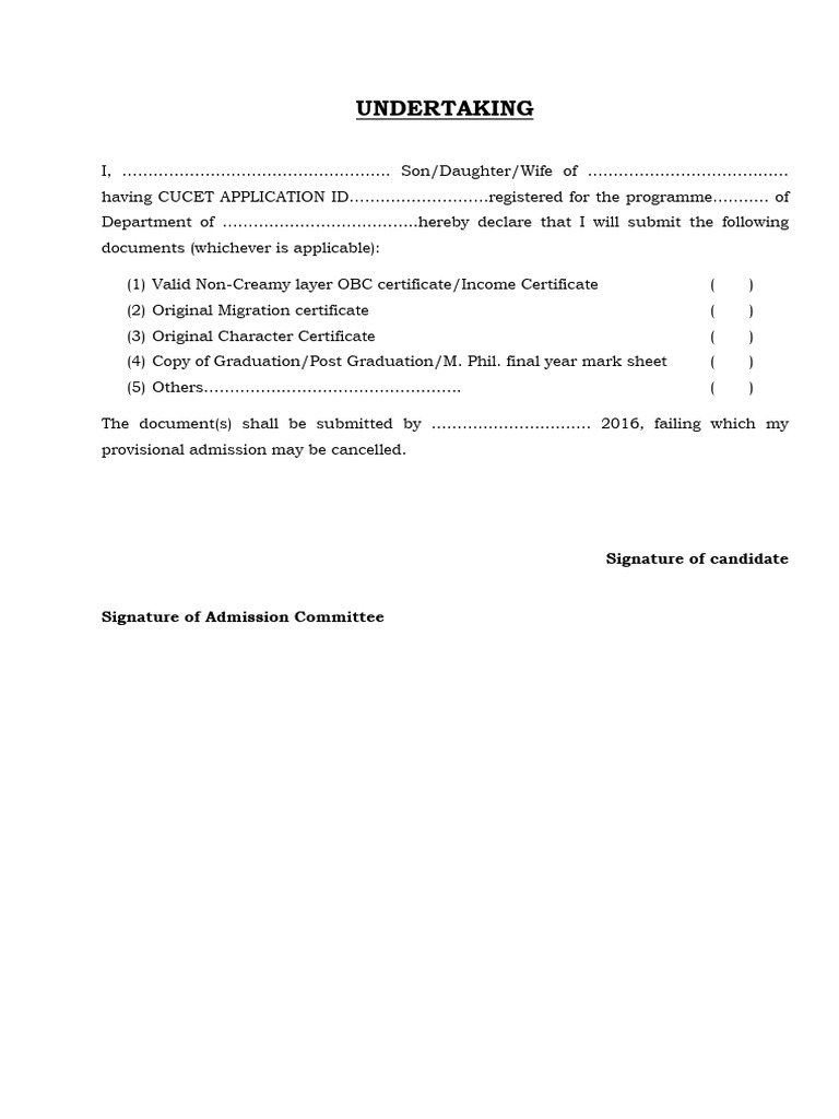 having CUCET APPLICATION ID………………………registered for the programme……..… of