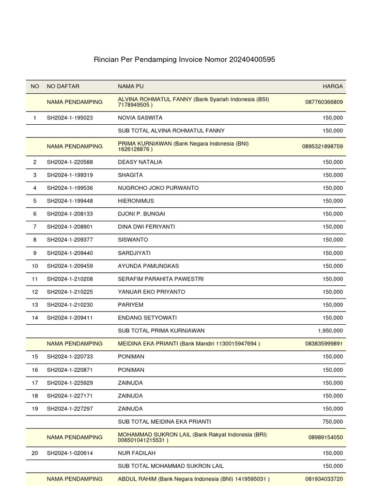 Rincian Per Pendamping Invoice Nomor 20240400595