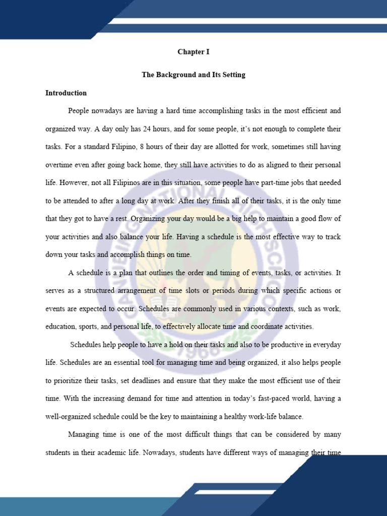 organized schedule. Students who have an organized schedule can accomplish their activities