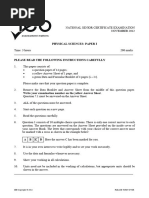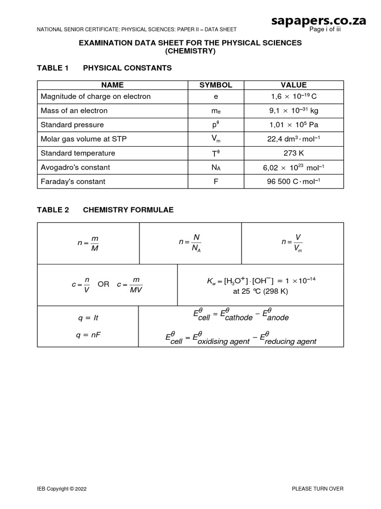 EXAMINATION DATA SHEET FOR THE PHYSICAL SCIENCES