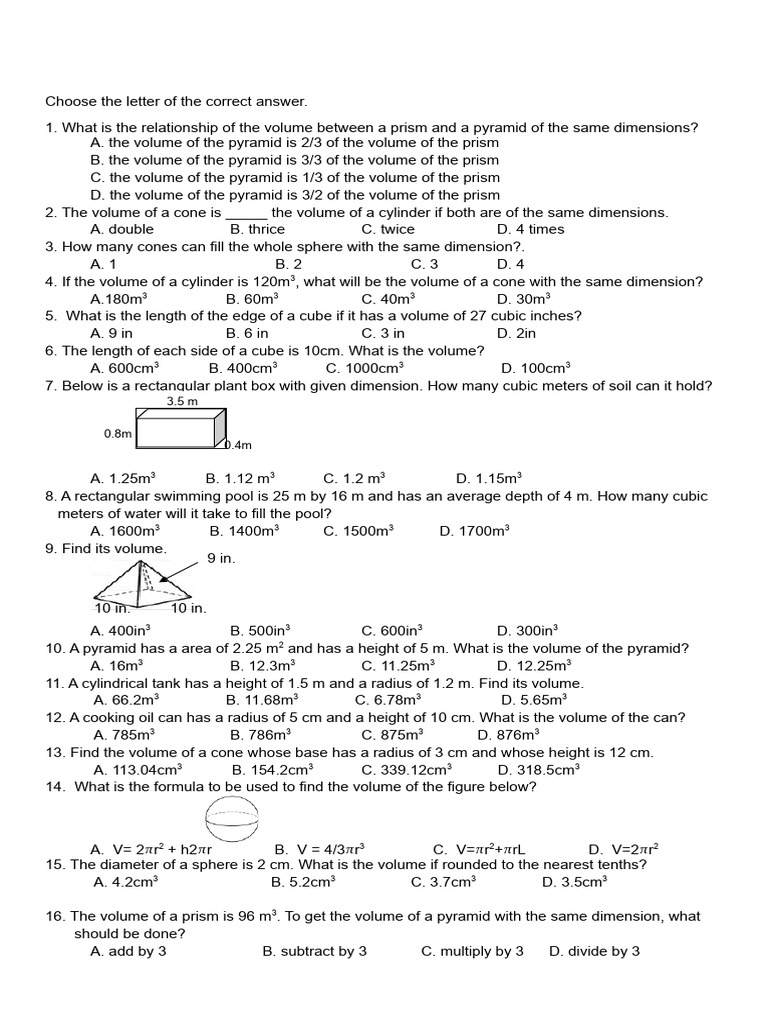 1. What is the relationship of the volume between a prism and a pyramid of the same dimensions?