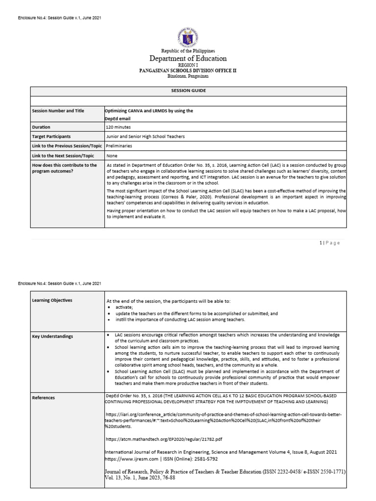 Having proper orientation on how to conduct the LAC session will equip teachers on how to make a LAC proposal, how