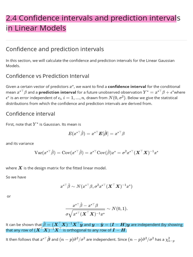 In this section, we will calculate the confidence and prediction intervals for the Linear Gaussian