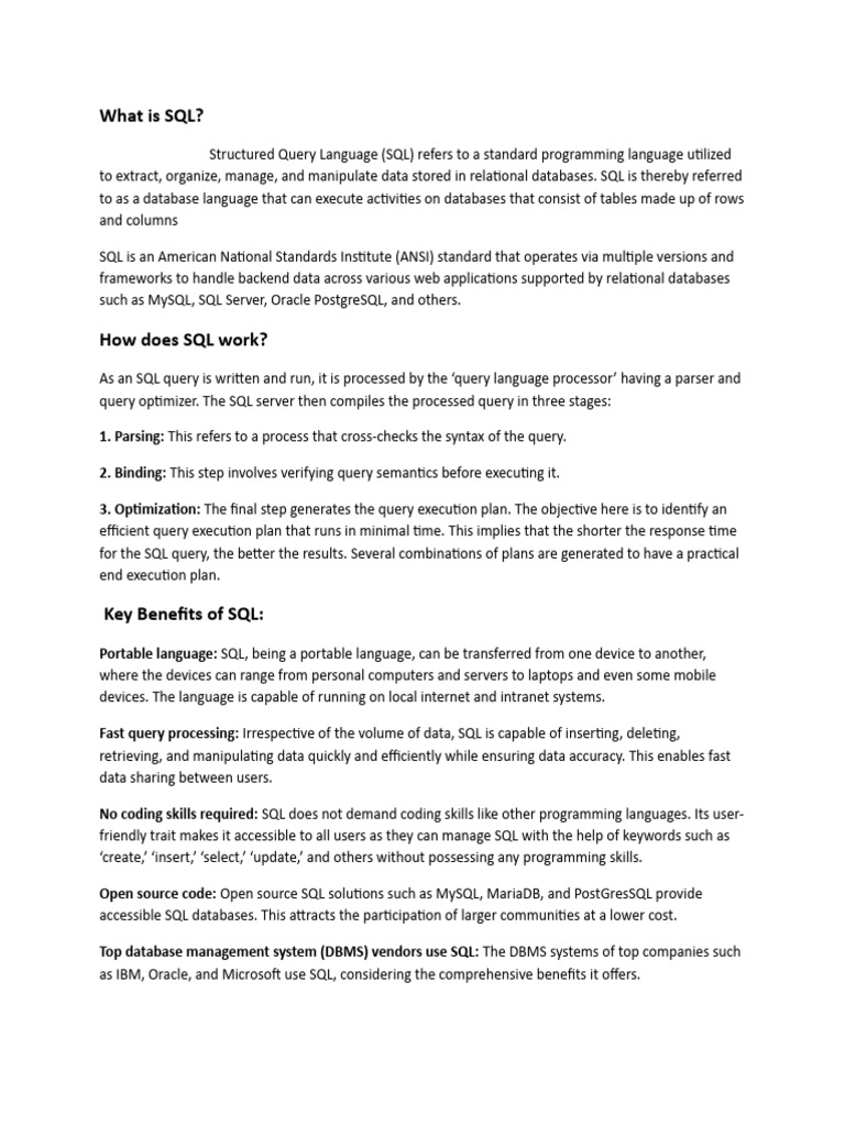 to extract, organize, manage, and manipulate data stored in relational databases. SQL is thereby referred