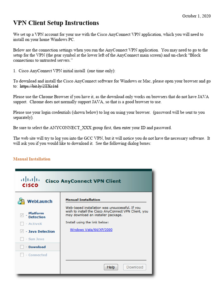 1. Cisco AnyConnect VPN initial install (one time only):