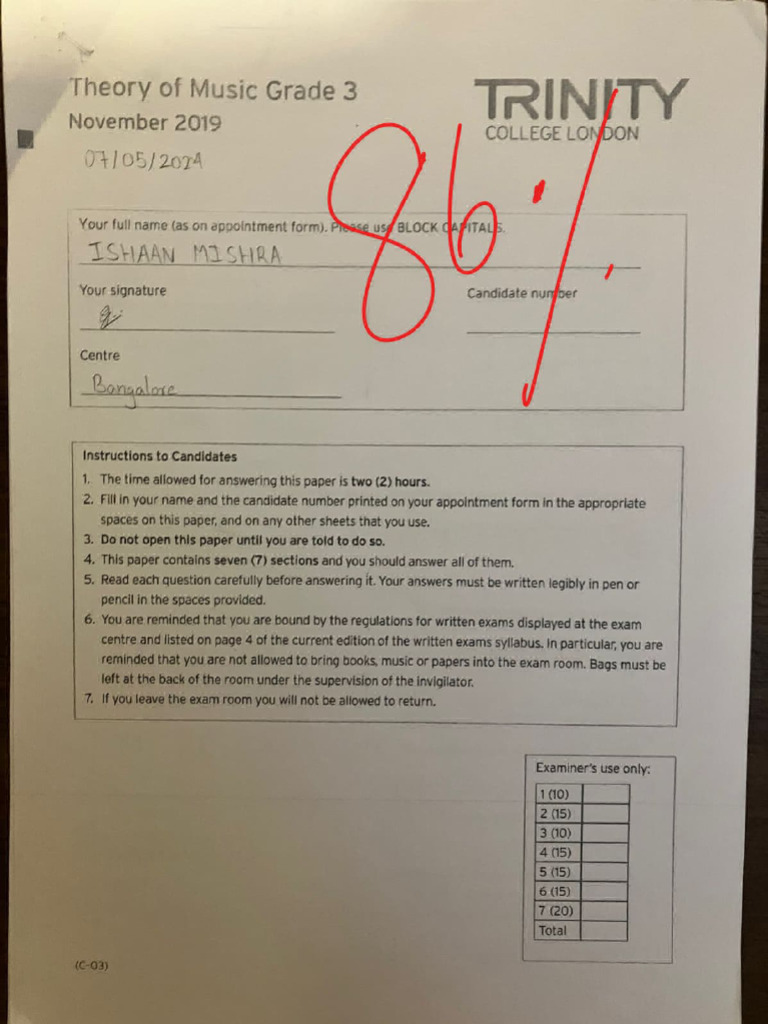 reminded that youare not allowed to bring b0oks, music or papers into the exam room. Bags must be