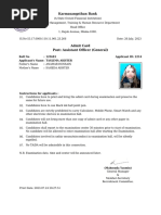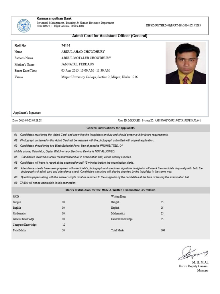 02 Photograph contained in this Admit Card will be matched with the photograph submitted with original application.