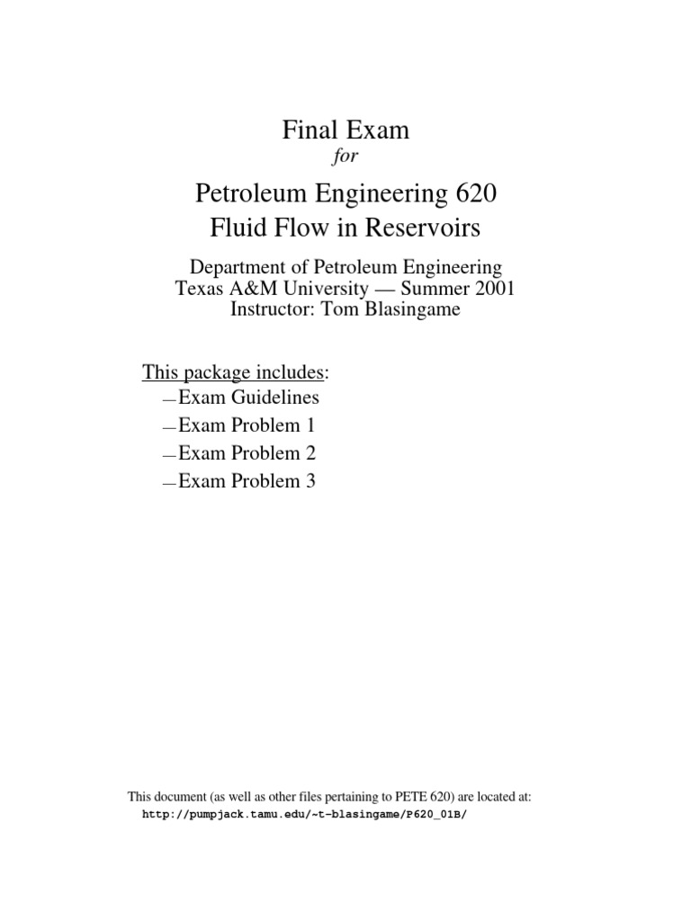 Course: Petroleum Engineering 620