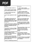 Areas of Strength (Knowledge, skills, and competencies) Areas of Weakness (Knowledge, skills still need to develop)
