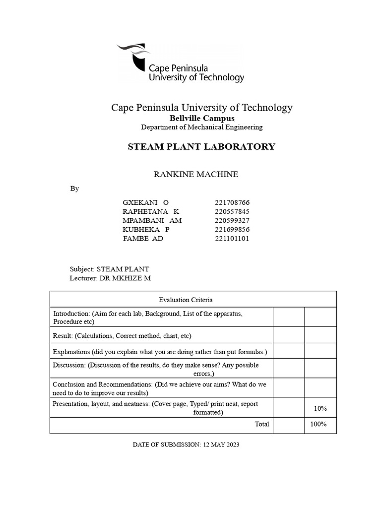 experiment successfully demonstrated the Rankine cycle and its non-ideal cycles. Heat