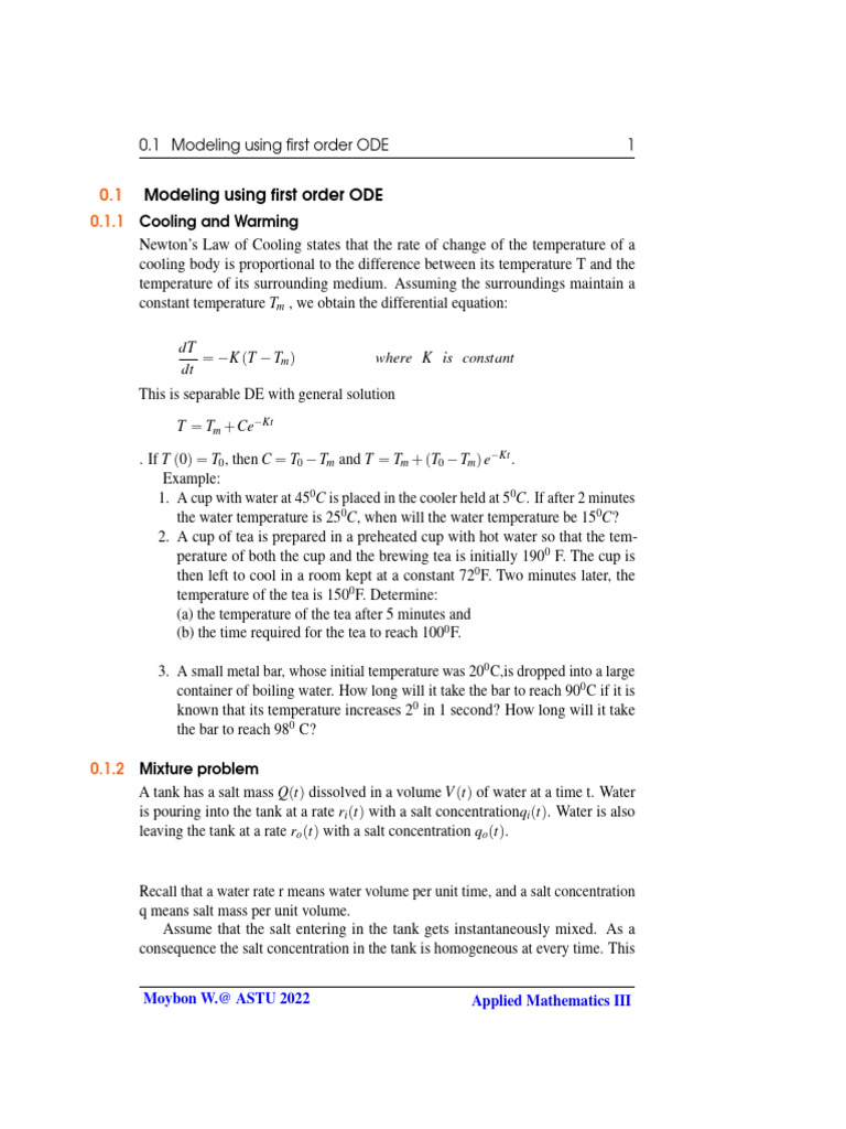 0.1 Modeling using first order ODE 3