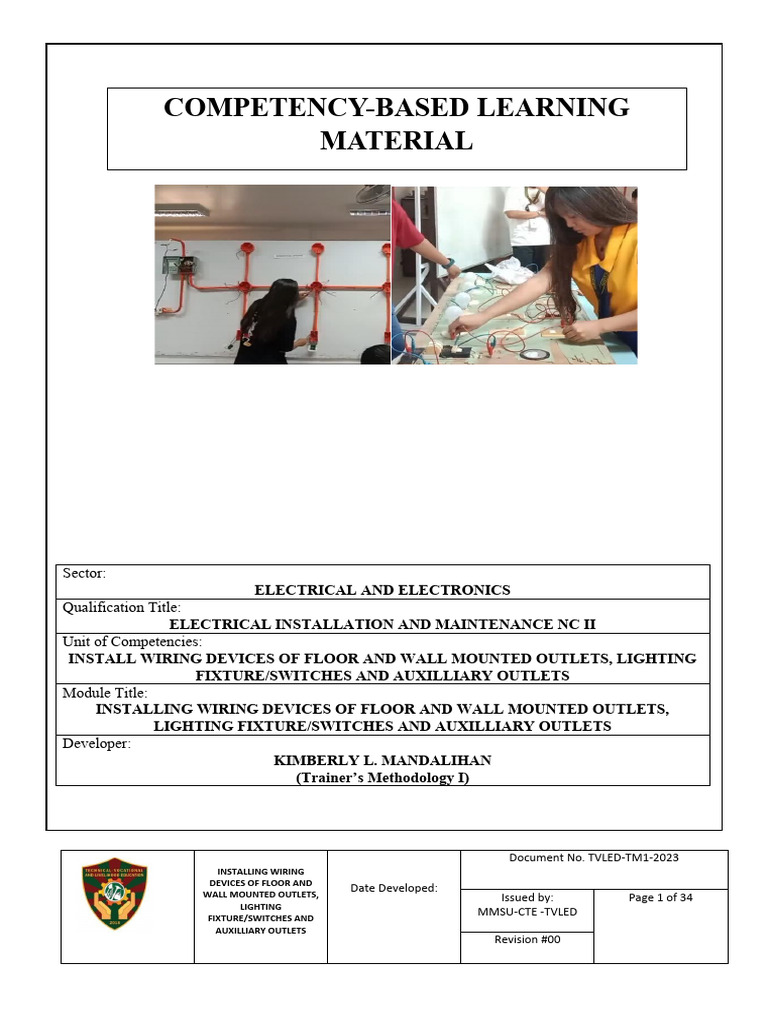 CBLM were taken from the ASEAN Trainee Manual in installing wiring devices of floor and