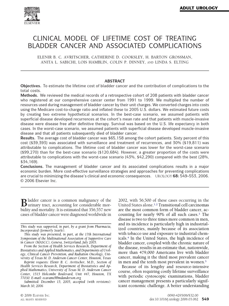 muscle-invasive disease, we applied the cohort’s annual cost such complications, respectively (Table I).