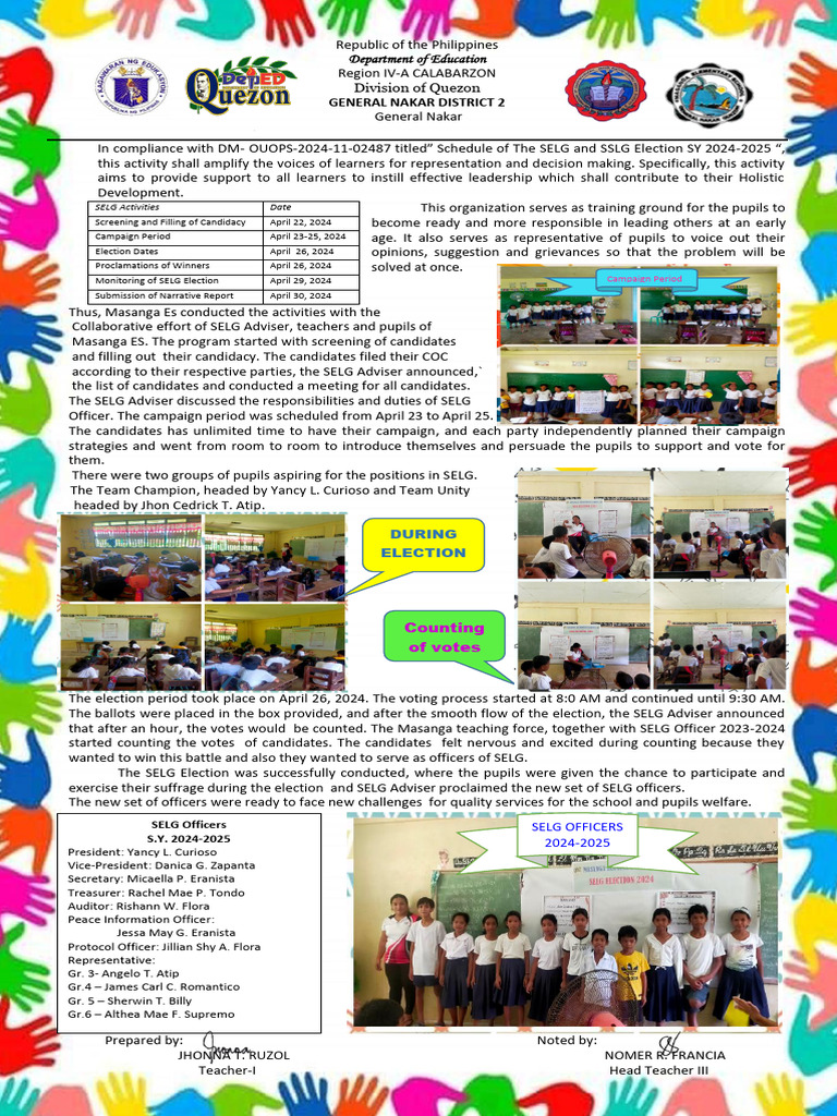 In compliance with DM- OUOPS-2024-11-02487 titled” Schedule of The SELG and SSLG Election SY 2024-2025 “,