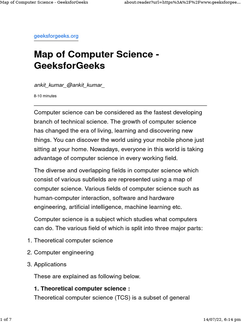 Map of Computer Science - GeeksforGeeks about:reader?url=https%3A%2F%2Fwww.geeksforgee...