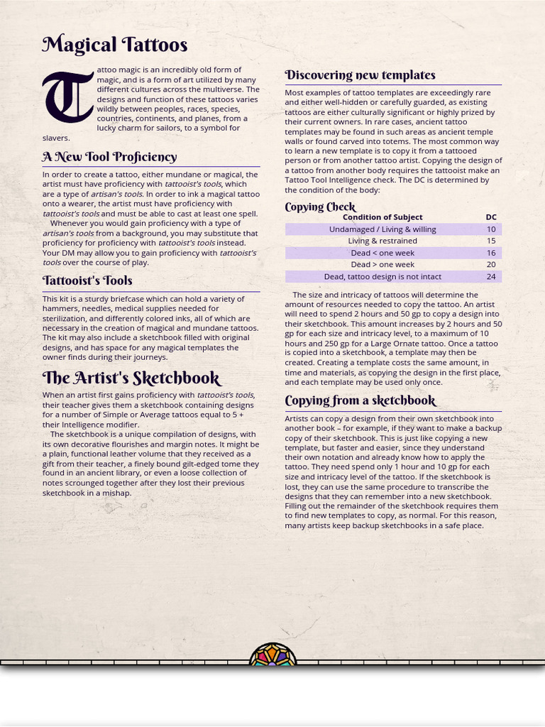 require more time and ink to apply. The properties of magical tattoos permeate deep within