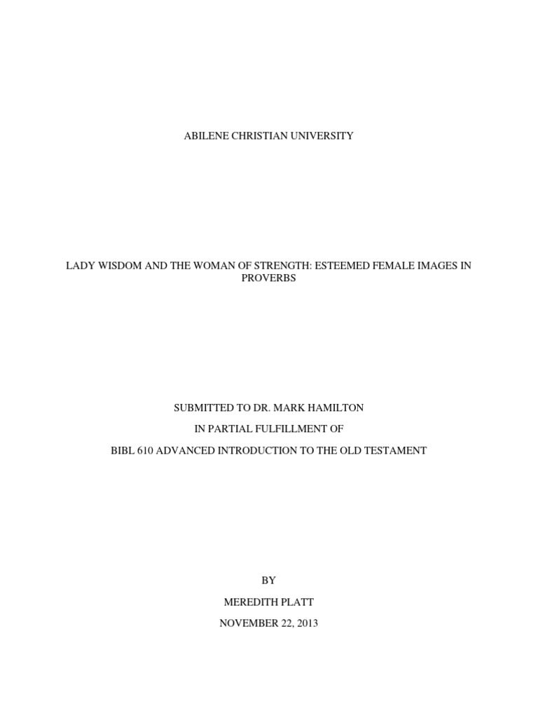 Strength to be literal, she can serve as the “human counterpart to Lady Wisdom”.55 Yee even