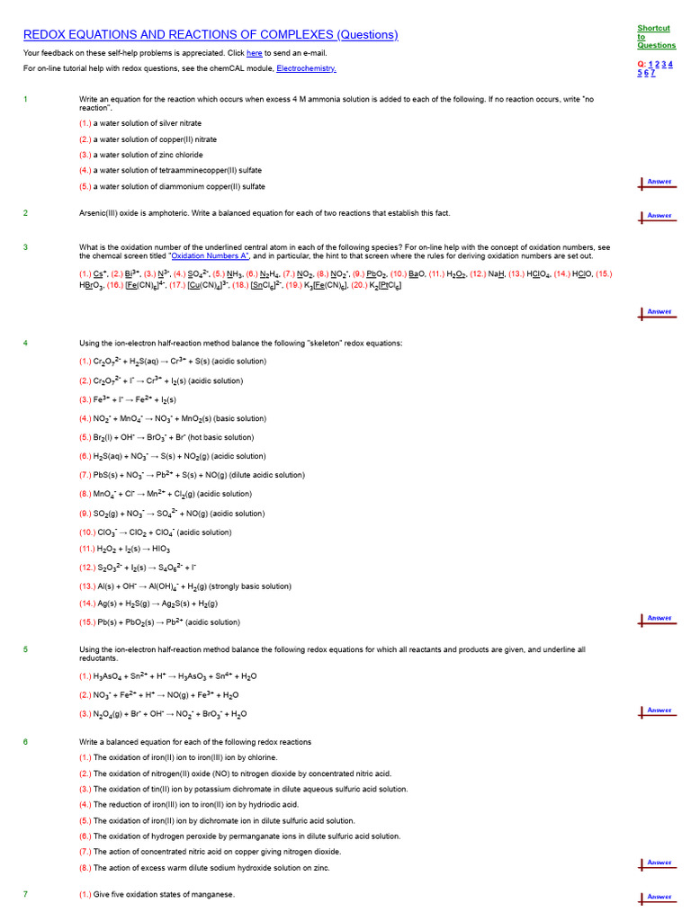 REDOX EQUATIONS AND REACTIONS OF COMPLEXES (Questions) to