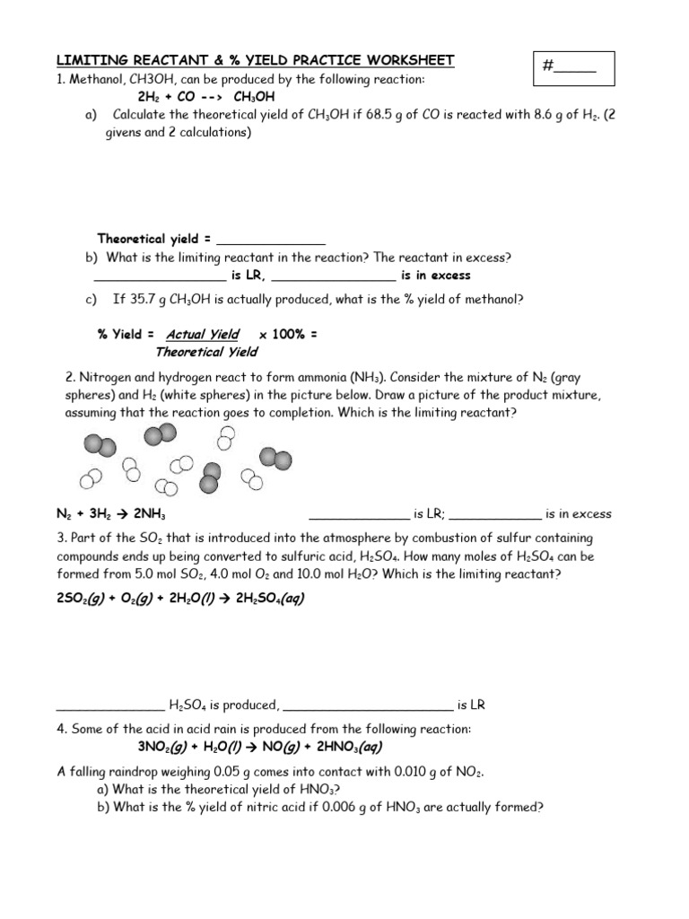 LIMITING REACTANT & % YIELD PRACTICE WORKSHEET #_____