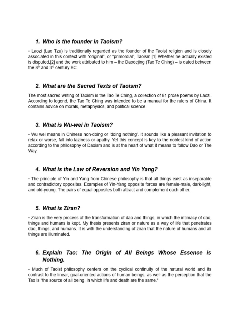 6. Explain Tao: The Origin of All Beings Whose Essence is