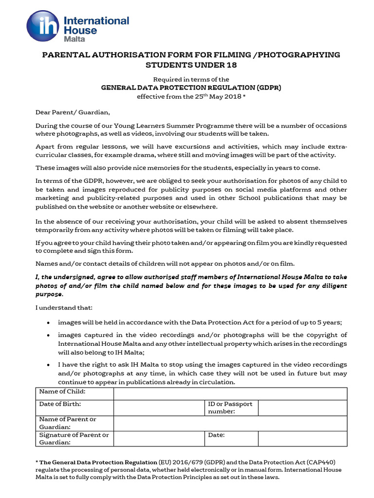 I, the undersigned, agree to allow authorised staff members of International House Malta to take