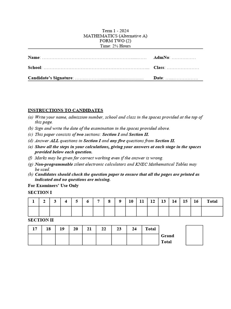 (a) Write your name, admission number, school and class in the spaces provided at the top of