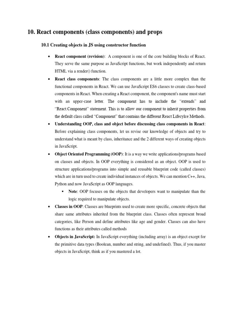 • Understanding OOP, class and object before discussing class components in React: