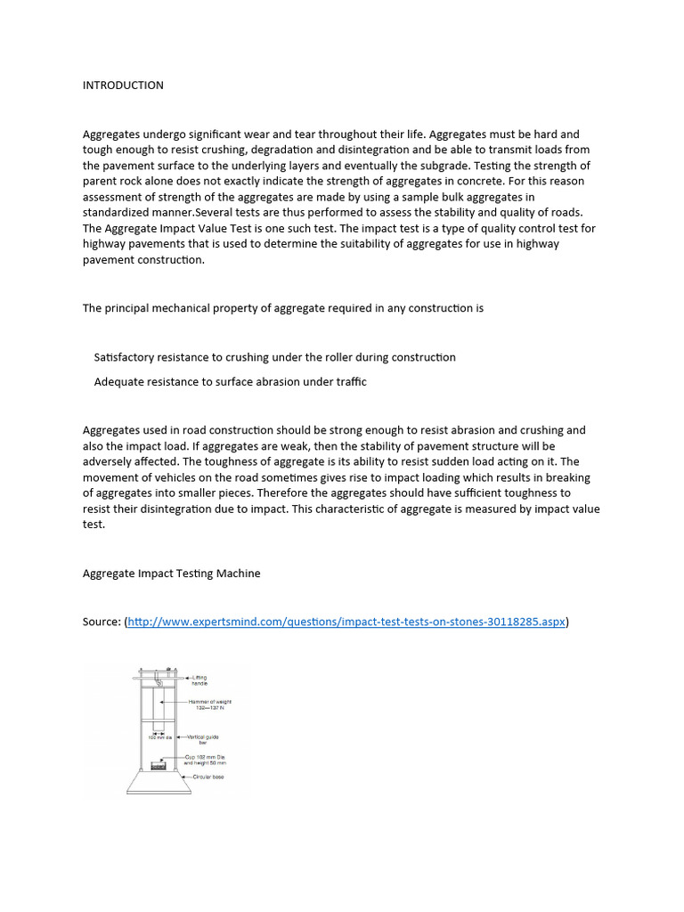 enough to resist fracture under impact. The aggregate impact test has been standardized by