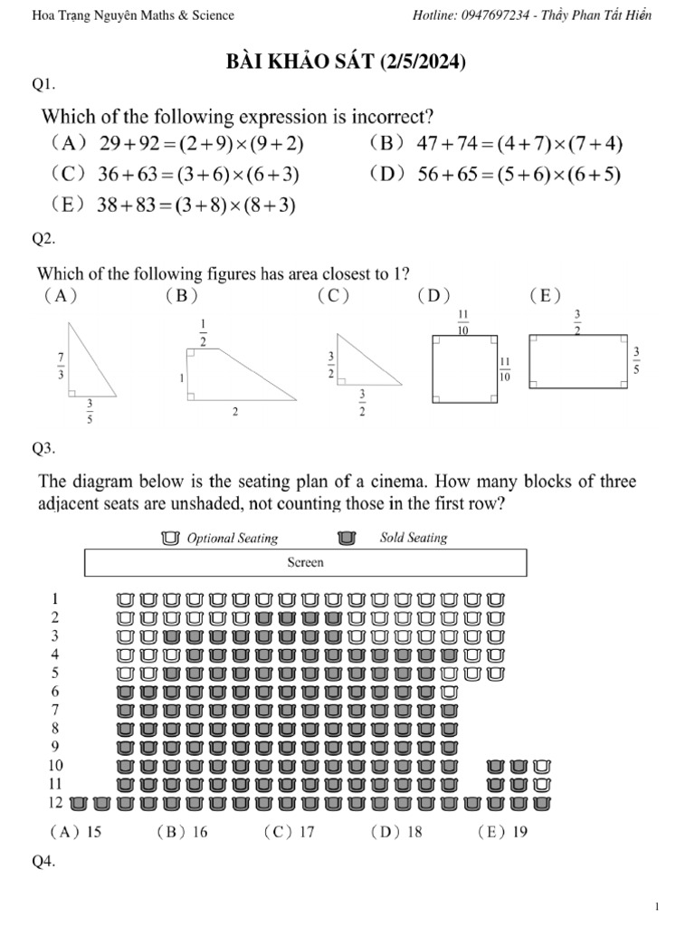 Hoa Trạng Nguyên Maths & Science Hotline: 0947697234 - Thầy Phan Tất Hiển
