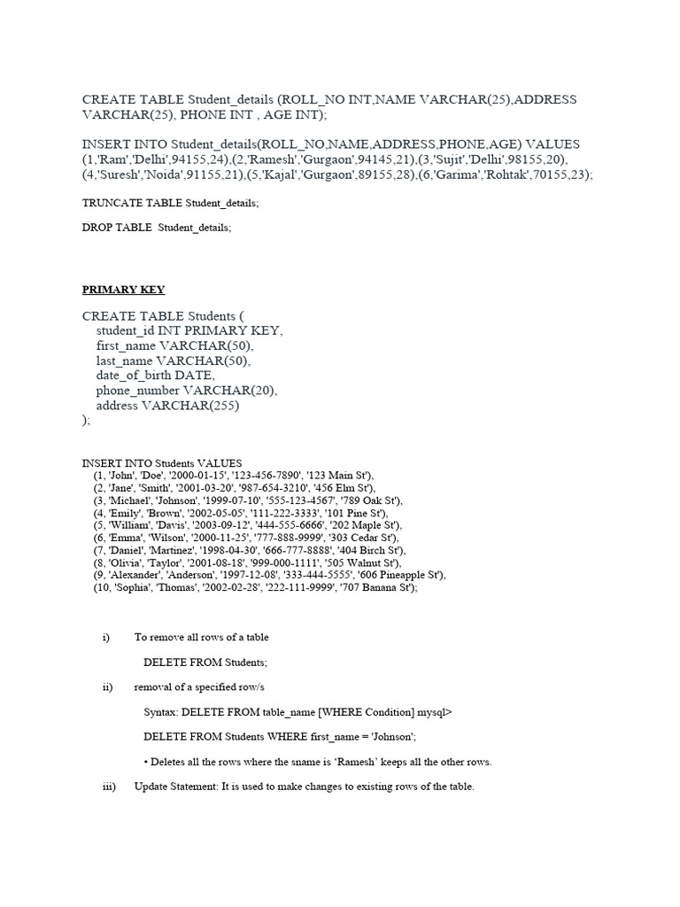 • Deletes all the rows where the sname is ‘Ramesh’ keeps all the other rows.
