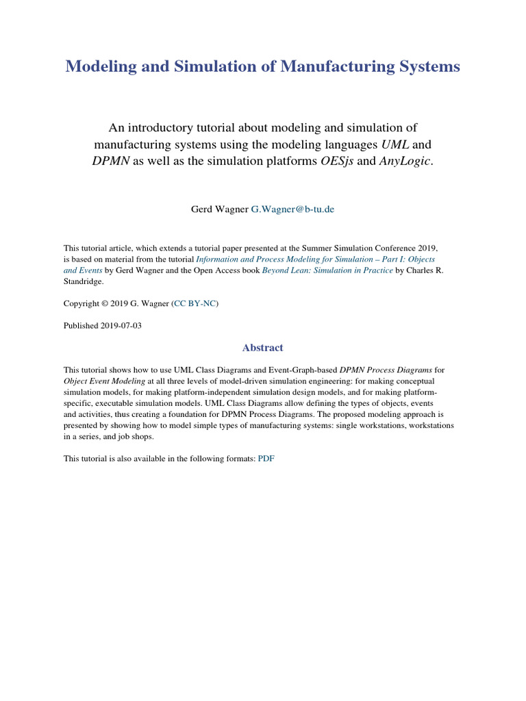 is based on material from the tutorial Information and Process Modeling for Simulation – Part I: Objects