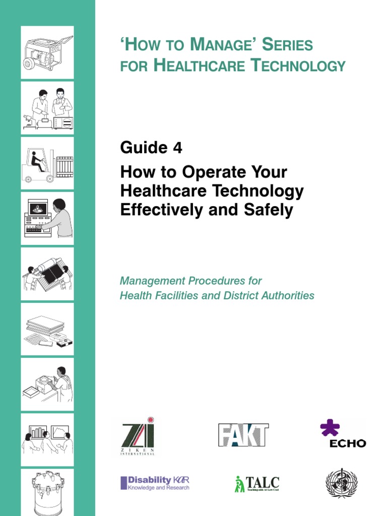 Guide 1: How to Organize a System of Healthcare Technology Management Guide 2: How to Plan and Budget for your Healthcare Technology Guide 3: How to Procure and Commission your Healthcare Technology Guide 4: How to Operate your Healthcare Technology Effectively and Safely Guide 5: How to Organize the Maintenance of your Healthcare Technology Guide 6: How to Manage the Finances of your Healthcare Technology Management Teams