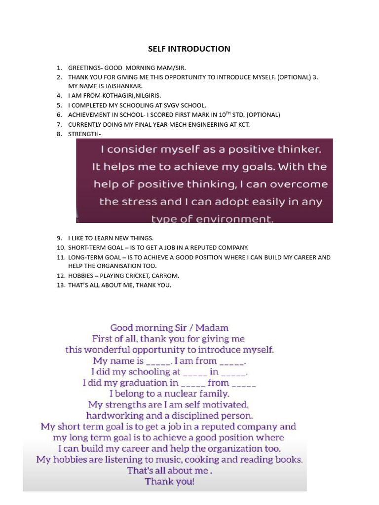 2. THANK YOU FOR GIVING ME THIS OPPORTUNITY TO INTRODUCE MYSELF. (OPTIONAL) 3.