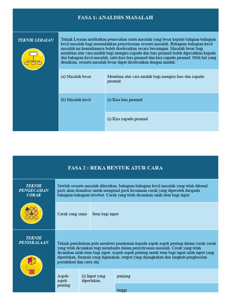 membina atur cara mudah bagi mengira isipadu dan luas piramid boleh dipecahkan kepada