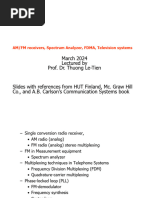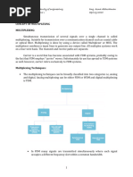 Q. Write about FDM? Ans. Frequency-division multiplexing (FDM) is a scheme in which numerous signals are combined for transmission on a single communications line or channel. Each signal is assigned a different frequency (subchannel) within the main channel. A typical analog Internet connection via a twisted pair telephone line requires approximately three kilohertz (3 kHz) of bandwidth for accurate and reliable data transfer. Twisted-pair lines are common in households and small businesses. But major telephone cables, operating between large businesses, government agencies, and municipalities, are capable of much larger bandwidths. Suppose a long-distance cable is available with a bandwidth allotment of three megahertz (3 MHz). This is 3,000 kHz, so in theory, it is possible to place 1,000 signals, each 3 kHz wide, into the long-distance channel. The circuit that does this is known as a multiplexer. It accepts the input from each individual end user, and generates a signal on a different frequency for each of the inputs. This results in a high-bandwidth, complex signal containing data from all the end users. At the other end of the long-distance cable, the individual signals are separated out by means of a circuit called a demultiplexer, and routed to the proper end users. A two-way communications circuit requires a multiplexer/demultiplexer at each end of the long-distance, high-bandwidth cable. When FDM is used in a communications network, each input signal is sent and received at maximum speed at all times. This is its chief asset. However, if many signals must be sent along a single long-distance line, the necessary bandwidth is large, and careful engineering is required to ensure that the system will perform properly. In some systems, a different scheme, known as time-division multiplexing, is used instead.