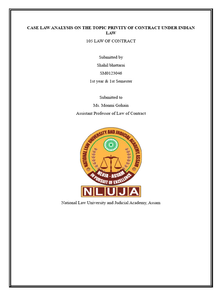 CASE LAW ANALYSIS ON THE TOPIC PRIVITY OF CONTRACT UNDER INDIAN