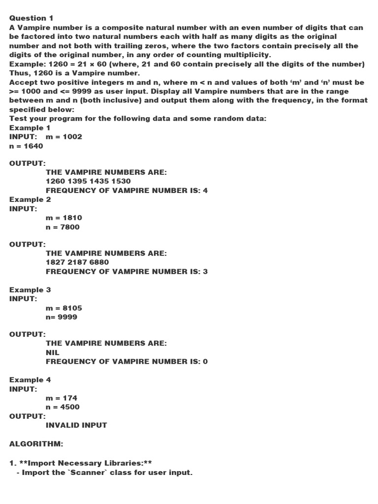 - Print "THE VAMPIRE NUMBERS ARE:" followed by the Vampire numbers found.