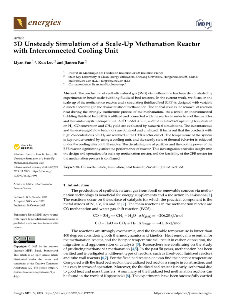 22. Sun, L.; Luo, K.; Fan, J. Numerical Simulation of CO Methanation for the Production of Synthetic Natural Gas in a Fluidized Bed