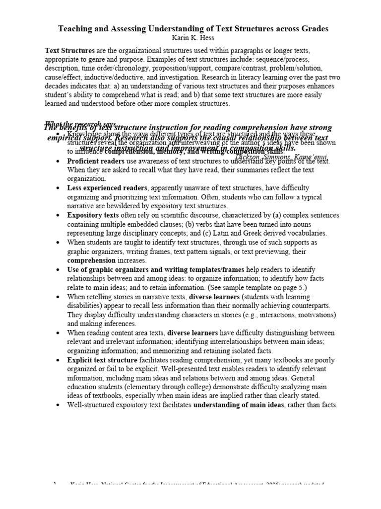 Teaching and Assessing Understanding of Text Structures across Grades