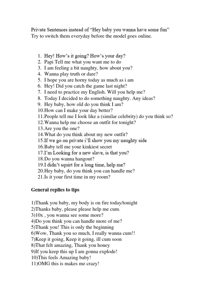 Private Sentences instead of “Hey baby you wanna have some fun”